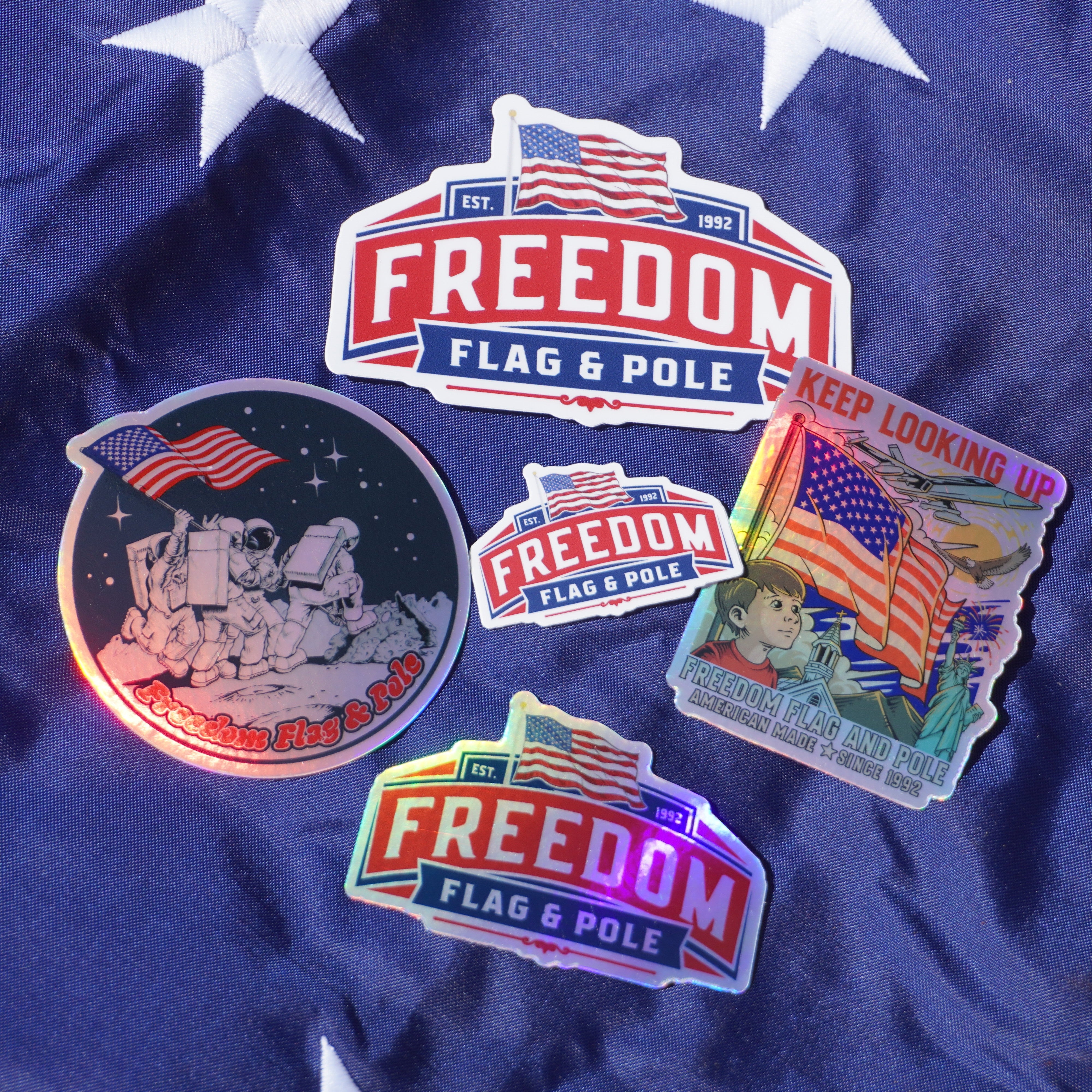 Perfect for Your Cooler or Water Bottle! Large Freedom Flag Logo 4" x 2.5" Circular Moon Flag Pole...Regular price $10.00Sale price $10.00 Regular priceUnit price per -